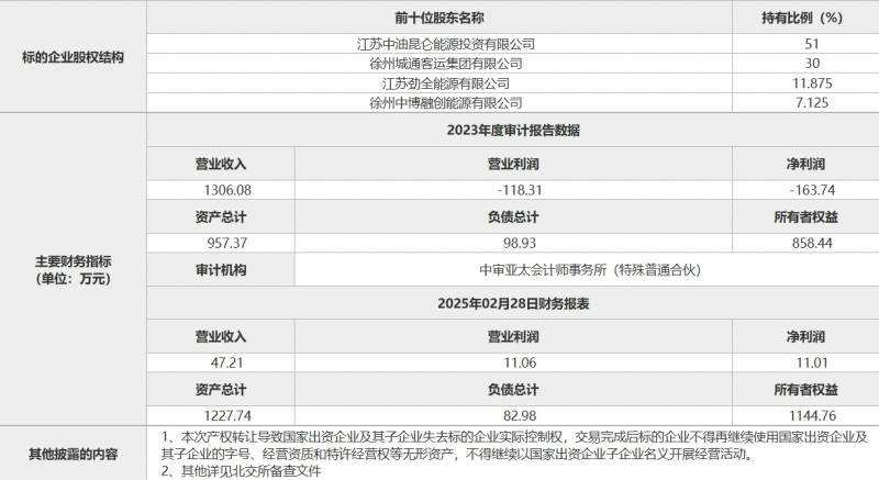 4月2日,江蘇中油昆侖能源投資有限公司轉(zhuǎn)讓徐州城通新能源有限公司51%股權(quán),轉(zhuǎn)讓方為中石油昆侖能源旗下全資子公司。