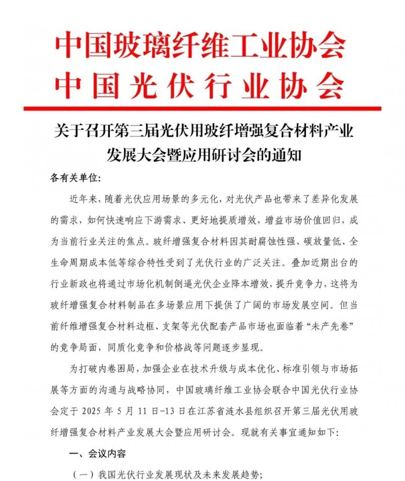中國玻璃纖維工業協會聯合中國光伏行業協會定于