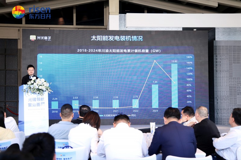 沙龍伊始,東方日升營銷中心副總裁徐斌出席會議并致辭,表達了對行業發展的展望,強調了東方日升在光儲領域的戰略布局與決心:“四川作為中國清潔能源發展的戰略高地,正以水風光儲一體化模式引領西部能源變革。東方日升將以技術創新為驅動,攜手合作伙伴共筑零碳未來。”