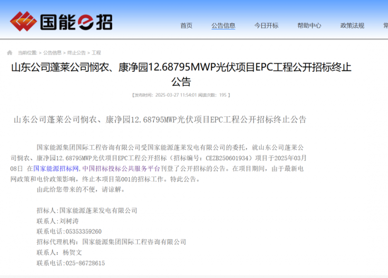 近期,國家能源集團多個分布式光伏項目受最新電網政策和電價政策影響,終止項目EPC招標。