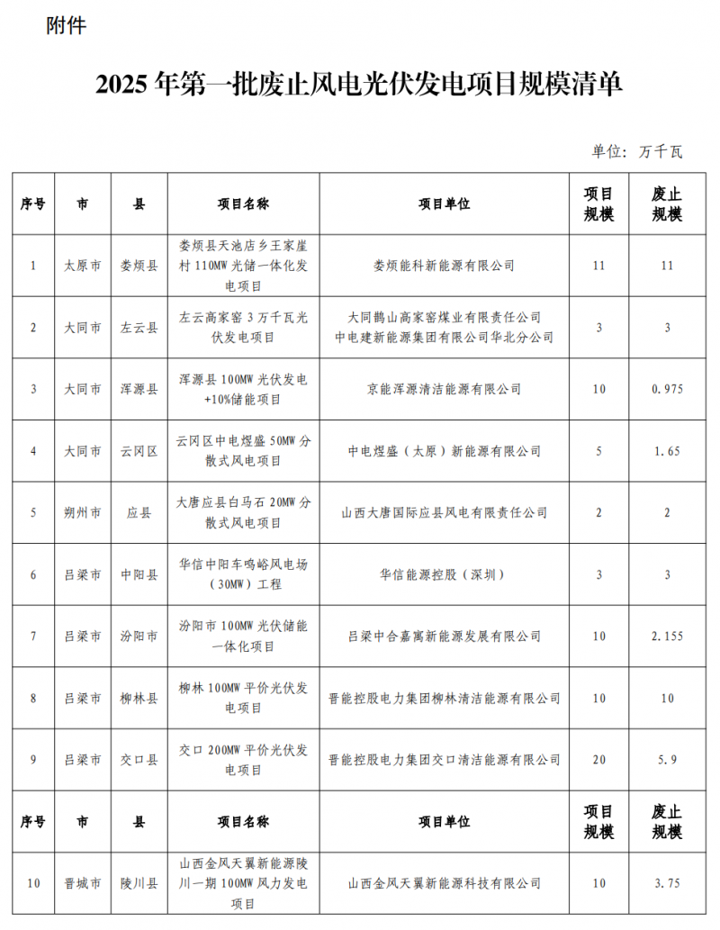 附件:2025年第一批廢止風(fēng)電光伏發(fā)電項(xiàng)目規(guī)模清單