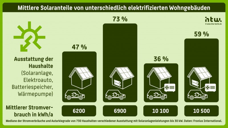 該項研究對730個家庭進行了調查,最終結果顯示:平均而言,所調查的住宅建筑中的安裝了光伏系統的可滿足47%的家庭電力需求和電動汽車的能源消耗,加裝了儲能電池的家庭平均自給率則達到73%。通過使用帶有電池存儲的光伏系統,其家庭每年從電網消耗的電力可以從平均6900kWh減少到1900kWh。