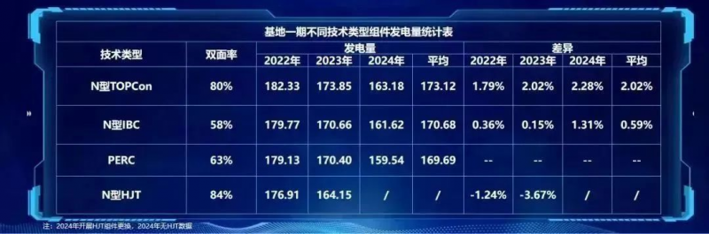 組件實證報告結論顯示:2024年發電量與往年同期相比趨勢基本一致,均為TOPCon技術類型組件發電量最高,較PERC、IBC組件分別高2.02%、1.43%。N型TOPCon組件較PERC組件發電量差異逐年增大,主要是N型組件的衰減特性優于PERC組件。