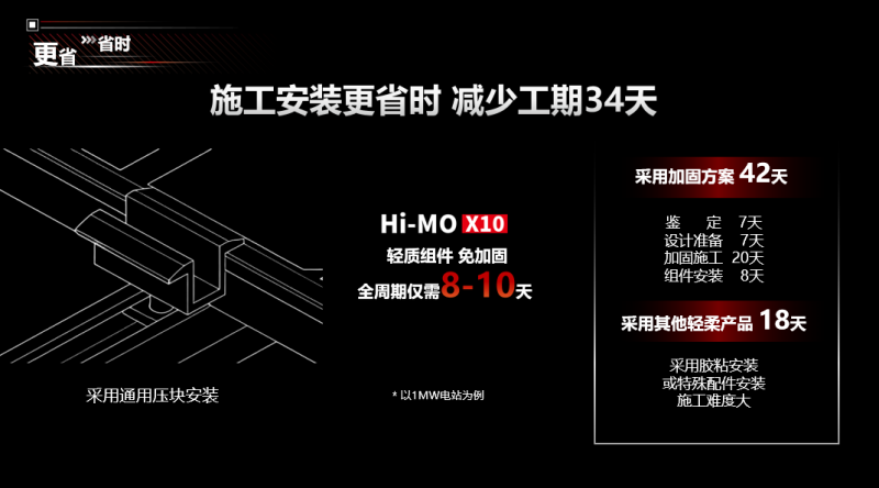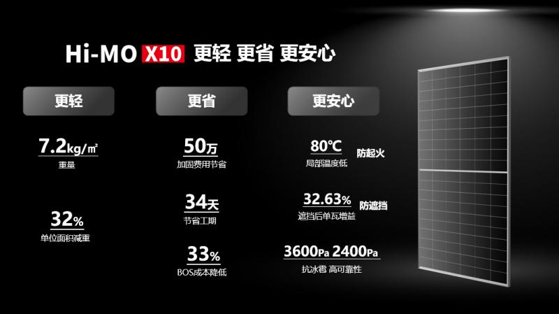 Hi-MO X10輕質(zhì)雙防組件的推出,為低載荷屋頂提供了“輕量、高效、安全”的一站式解決方案,以技術(shù)創(chuàng)新加速“雙碳”目標落地,引領(lǐng)光伏行業(yè)向場景化、精細化升級。