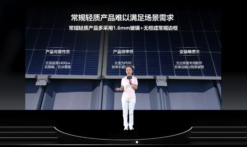 當前市場輕質(zhì)組件普遍存在可靠性短板:PERC/TOPCon技術(shù)效率僅21%左右,柔性組件易黃變、變形,膠粘安裝存在脫膠風險。隆基Hi-MO X10以“輕量不降級”填補市場空白。