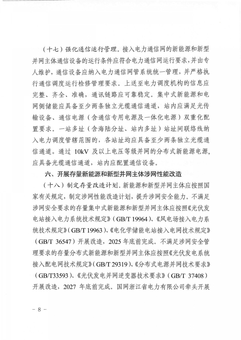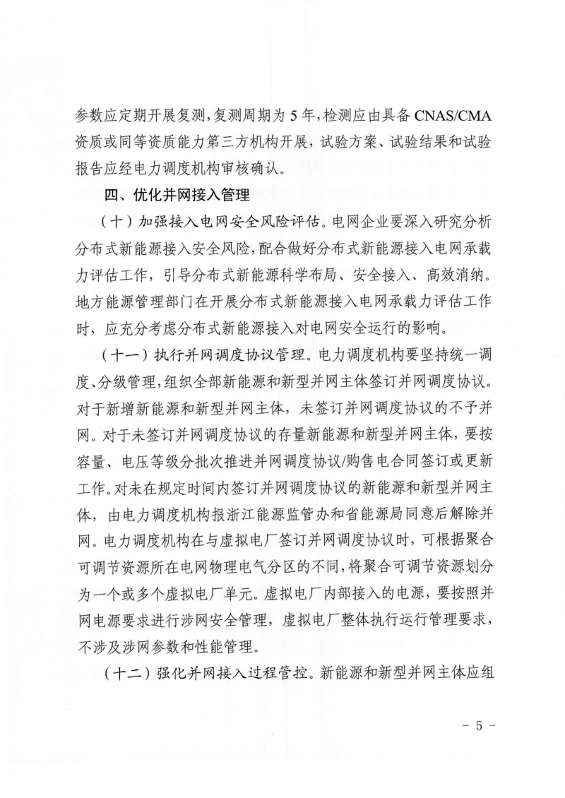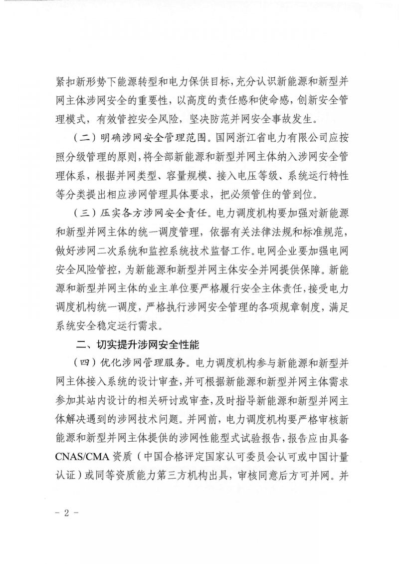 文件明確了涉網(wǎng)安全管理范圍。國網(wǎng)浙江省電力有限公司應按照分級管理的原則,將全部新能源和新型并網(wǎng)主體納入涉網(wǎng)安全管理體系,根據(jù)并網(wǎng)類型、容量規(guī)模、接入電壓等級、系統(tǒng)運行特性等分類提出相應涉網(wǎng)管理具體要求,把必須管住的管到位。