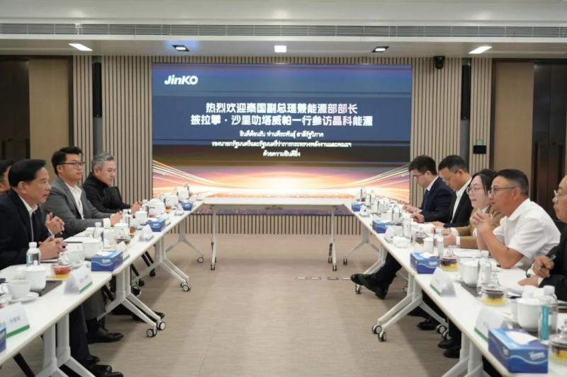 會談中,泰方重點關注了晶科在海上光伏項目的推進以及戶用光伏的發(fā)展,并圍繞新能源政策引導等議題與晶科深入交流。作為在泰合作的重要實踐之一,晶科能源與泰國能源巨頭海灣能源發(fā)展公司(Gulf)建立了長期戰(zhàn)略伙伴關系,自2024年開始在未來七年向其供應總計3.5GW的尖端N型TOPCon Tiger Neo組件,目前已成功交付約1GW,為泰國大型地面電站提供強勁的清潔電力支持。在鞏固組件優(yōu)勢的同時,晶科能源通過多元化儲能解決方案提升泰國能源利用效率,并通過提供領先的技術產(chǎn)品、全面的本土化服務和積極的公益貢獻,為泰國構建安全、靈活、穩(wěn)定的新型電力系統(tǒng)提供支撐。