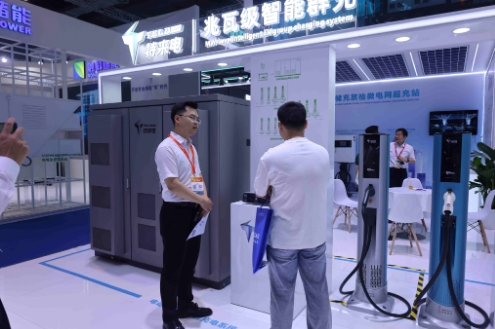 作為智能群充技術的首創企業,特來電基于充電網技術架構,可根據配電網富余容量變化和不同車輛充電需求進行靈活調控,持續引領充電行業智能化和大功率發展趨勢。現場展示了“兆瓦級智能群充系統“,智能群充電產品通過標準模塊化多級并聯技術可支持功率池的持續擴展,目前可實現最高4000kW的兆瓦級功率池,有效支撐了快速增長的大功率充電需求。