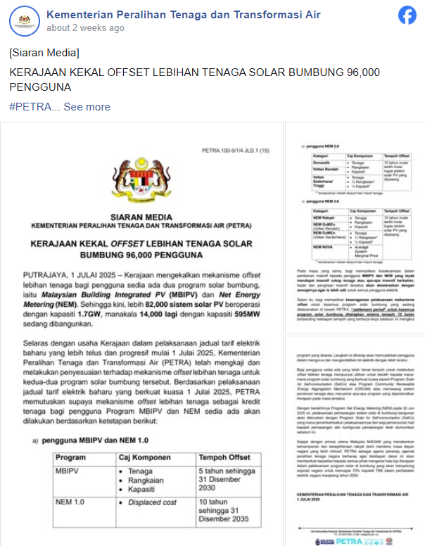為順應這一轉變,近日,馬來西亞能源轉型與水資源轉型部 (PETRA)宣布,該國將通過維持能源補償機制繼續支持屋頂太陽能用戶。