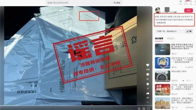今年6月,網傳“沙雅縣有1GW光伏產業”向外部進行分標段招標的信息,引發社會廣泛關注。經沙雅縣發展和改革委員會核實,該招標信息為不實信息。