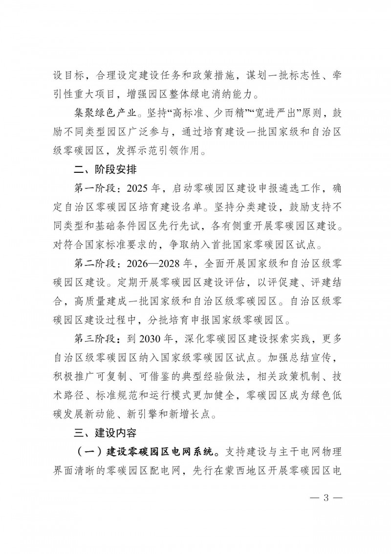 第一階段:2025年,啟動零碳園區建設申報遴選工作,確定自治區零碳園區培育建設名單。堅持分類建設,鼓勵支持不同類型和基礎條件園區先行先試,各有側重開展零碳園區建設。對符合國家標準要求的,爭取納入首批國家零碳園區試點。