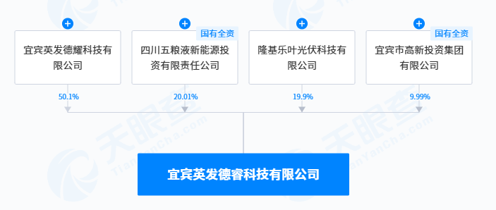 今年2月,由五糧液參股的宜賓英發(fā)德睿科技有限公司正式成立,注冊資本高達10億元,一同參股的還有光伏龍頭隆基綠能、國企宜賓高投集團,陣容可謂豪華。