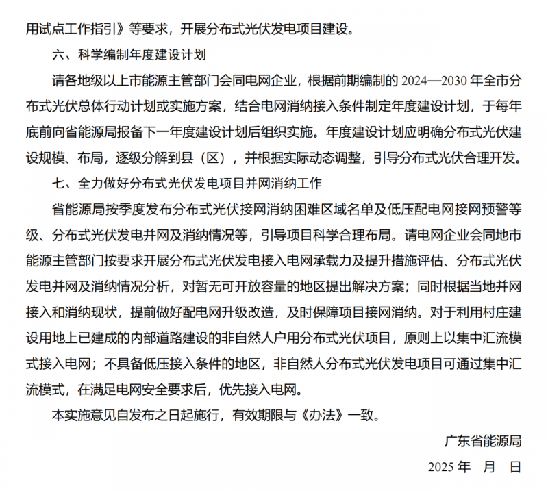 通知表示,結合廣東省不再發展地面集中式光伏發電、重點支持屋頂光伏發電發展的實際,提出如下廣東省貫徹落實《辦法》的實施意見。