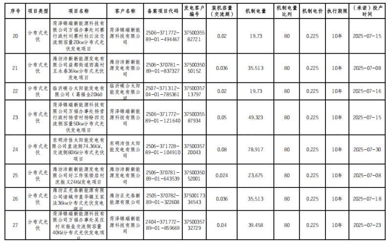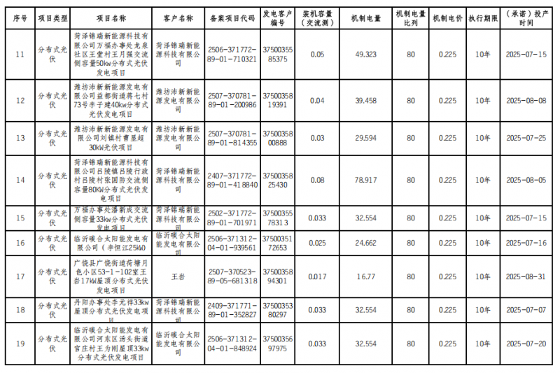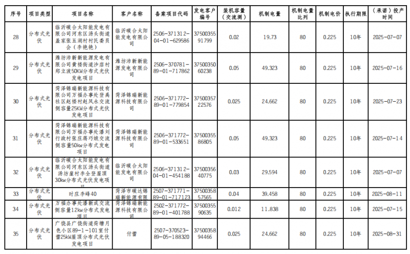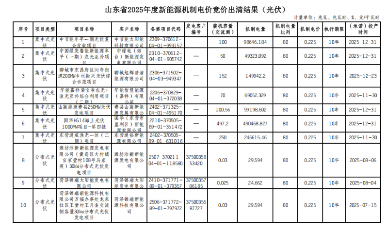 附件1:山東省2025年度新能源機制電價競價出清結果(光伏)(僅截選部分項目)