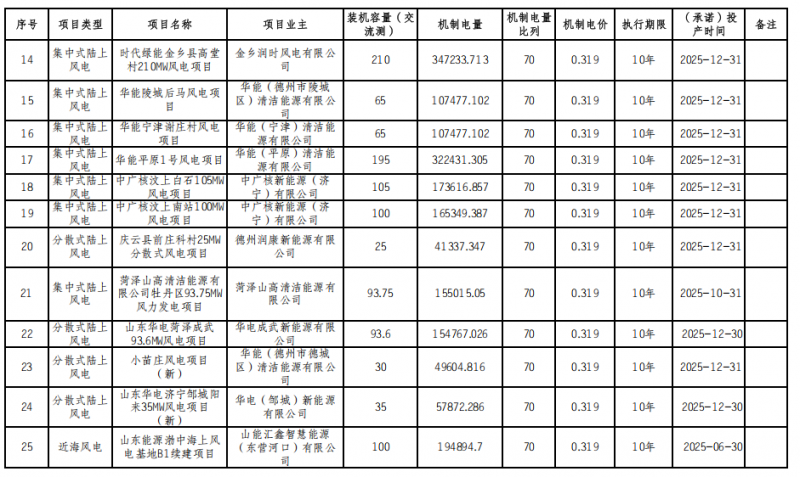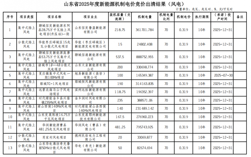 關于山東省2025年度新能源機制電價競價出清結果的公示