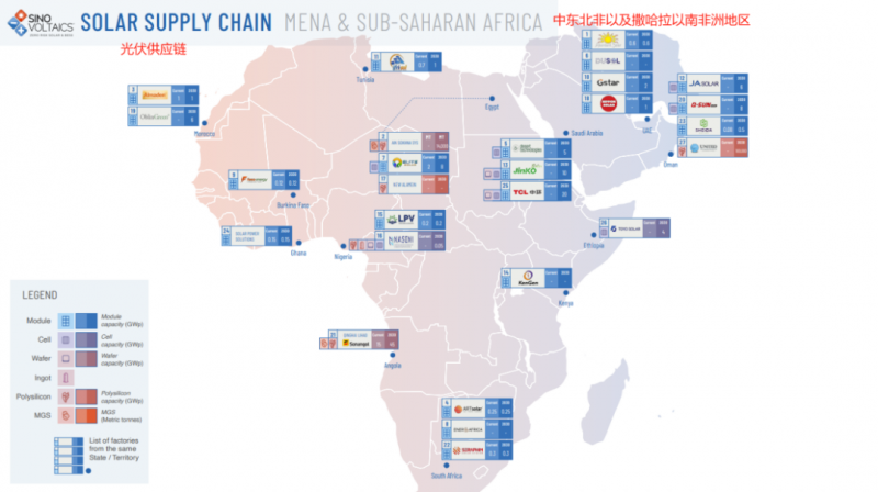 有報(bào)告預(yù)計(jì),到2030年,中東非洲的組件產(chǎn)能或達(dá)62.12GW,電池片52.55GW,多晶硅45GW,冶金級(jí)硅29萬噸。