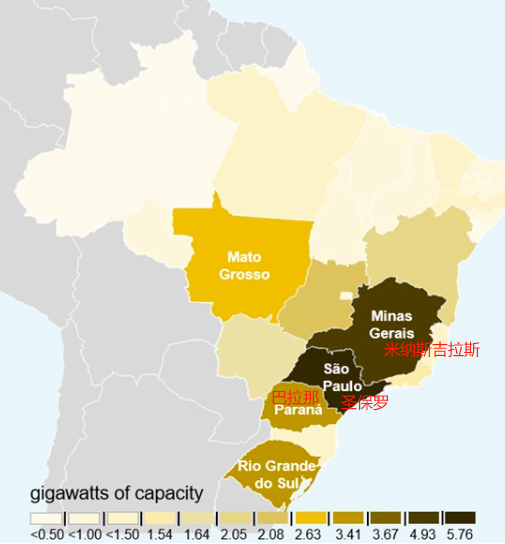 在集中式發電方面,裝機容量最大的州分別為米納斯吉拉斯州(7.41GW)、巴伊亞州(2.40GW)和皮奧伊州(2.09GW)。