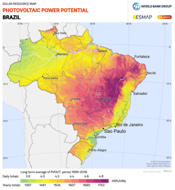 巴西土地面積較大,超850萬平方公里。巴西全國約有9300萬個潛在可用屋頂,到目前為止,只有一小部分安裝了屋頂光伏系統。