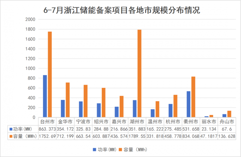 從地域分布來看項目備案數量,寧波市遙遙領先,共有151個,規模方面,寧波6月備案規模為32.74MW/74.84MWh,7月備案規模為293.09MW/588.67MWh,環比增長約686.87%。
