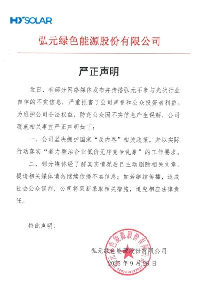 然而爭(zhēng)議并未就此平息。9月,弘元綠能“被踢出自律名單”的消息曝出,一度令其股價(jià)跌至谷底,公司不得不發(fā)布《嚴(yán)正聲明》以正視聽(tīng)。