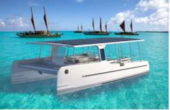 PlanetSolar公司的圖拉諾號:圖拉諾號可是世界紀錄的保持者,它在2012年成功完成了為期18個月的環(huán)球航行,該船也順利榮登世界最大太陽能船的寶座。這艘造價2600萬美元的雙體太陽能船長101英尺(約合30.7米),寬49英尺(約合15米),最多可搭乘50名乘客。而驅動它航行的則是船身上覆蓋的537平米的太陽能電池板。