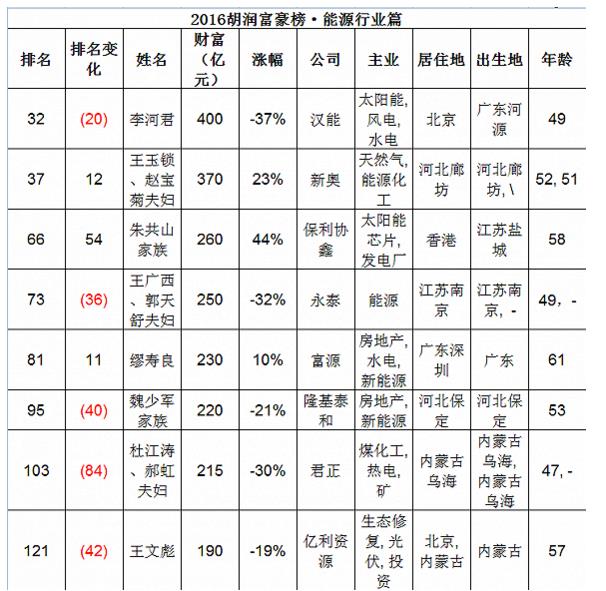 涉及到能源行業,也是生產大富豪的高產區。榜單顯示,能源行業共有81位企業家榮登榜單: