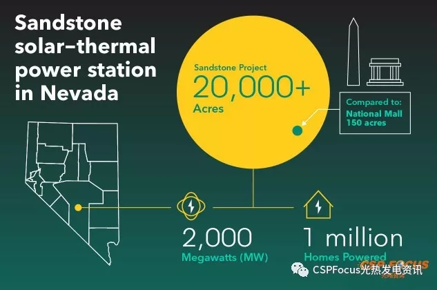 共計2G的Sandstone太陽能發電項目將采用技術先進的熔鹽塔式光熱發電系統,計劃包括10座聚光塔,單個塔式電站均將配置10小時熔鹽儲熱系統,可實現一周7天24小時運轉。