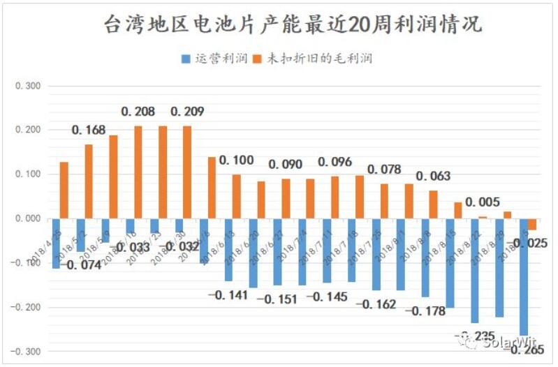 而對(duì)于我,這個(gè)價(jià)格報(bào)表背后則有質(zhì)的不同,因?yàn)閷?duì)應(yīng)我的成本數(shù)據(jù)庫(kù),發(fā)現(xiàn)對(duì)于臺(tái)灣地區(qū)的電池片產(chǎn)能迎來(lái)全面虧現(xiàn)金的時(shí)代。