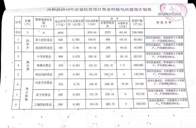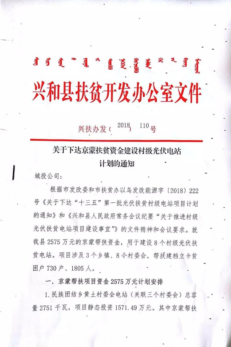 內蒙古興和縣關于下達京蒙資金建設村級光伏電站計劃的通知