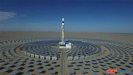 首航節能敦煌10MW光熱示范電站是全球第三座、亞洲第一座可實現24小時連續發電的光熱電站,采用熔鹽塔式技術路線,儲熱時長達15h。該項目于2014年8月開工,于2016年12月26日投運。