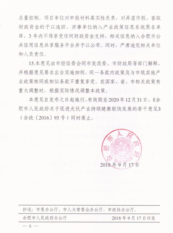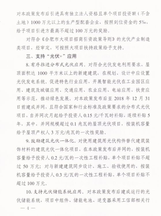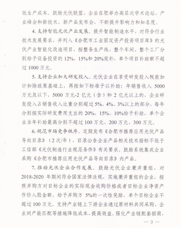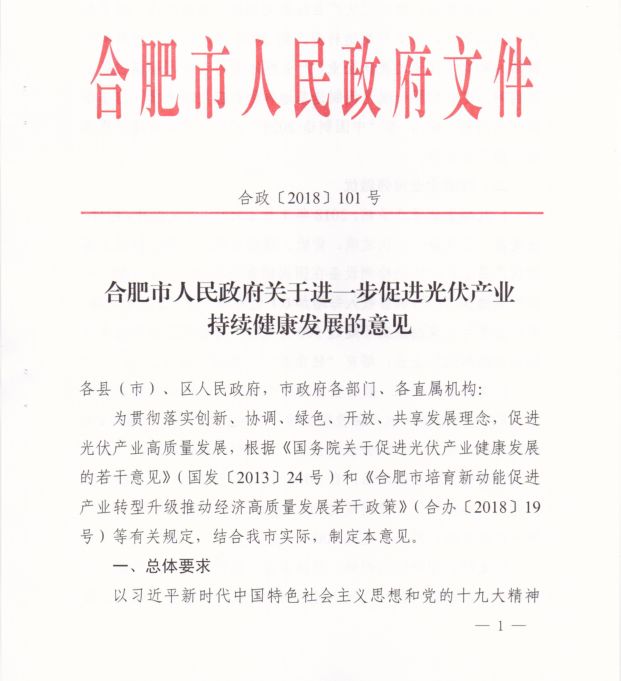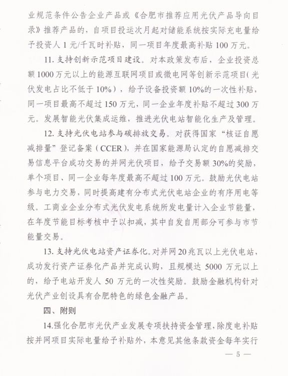 合肥市地方光伏補貼出臺:給予分布式0.15元/kWh,連續補貼5年