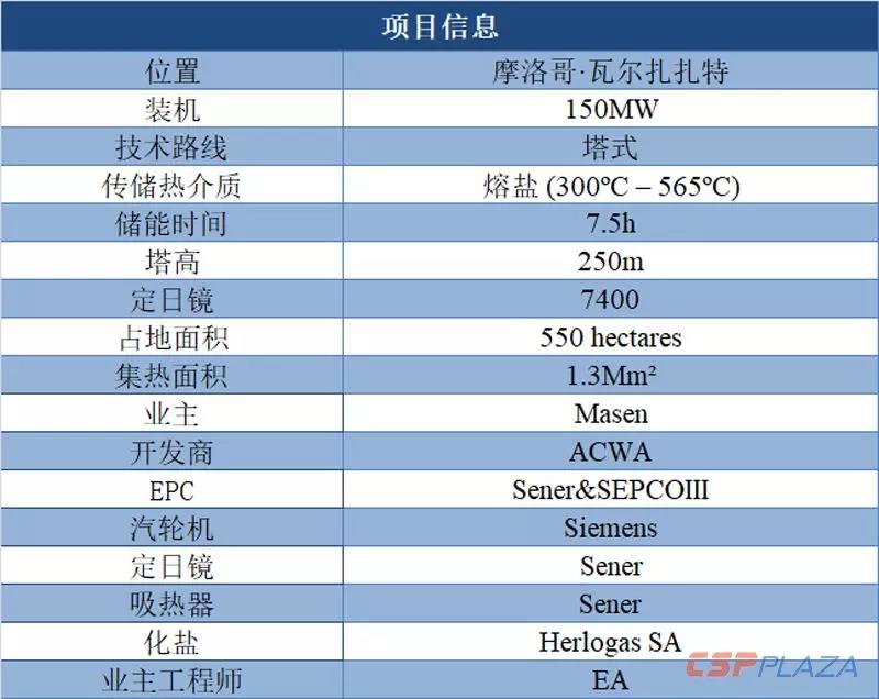 據(jù)CSPPLAZA此前報道,該項目儲熱時長達(dá)7.5小時,可為摩洛哥電網(wǎng)日均長達(dá)5小時的用電高峰時段(電價溢價率達(dá)18%)提供調(diào)峰電力。作為繼美國新月沙丘光熱電站(裝機110MW)之后即將投運的全球第二座百兆瓦級商業(yè)化熔鹽塔式光熱電站,也是單塔裝機最大的塔式光熱電站。