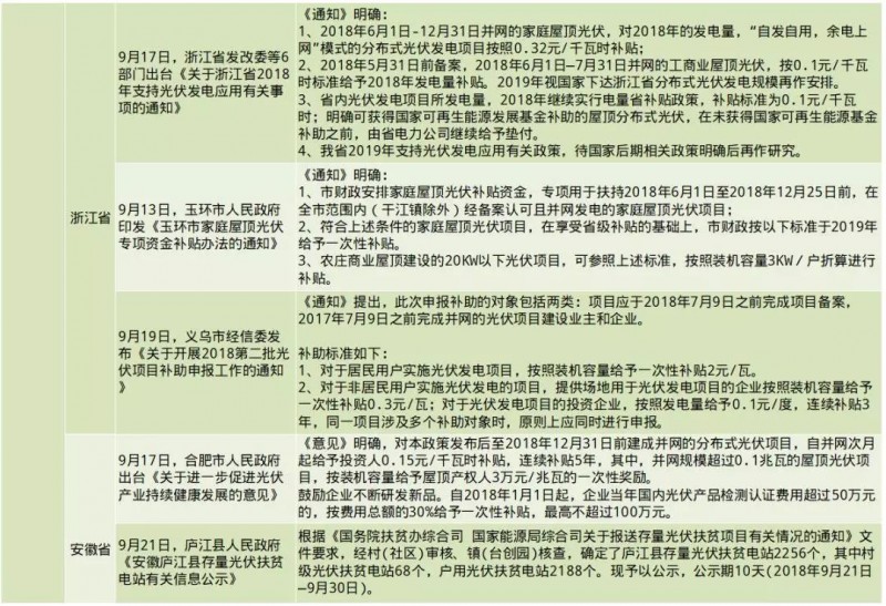 地方:共出臺23條;浙江、安徽、上海、陜西、內(nèi)蒙古、河北、四川、北京、廣東、吉林、河南、山東等12省市的光伏政策有新的變動。