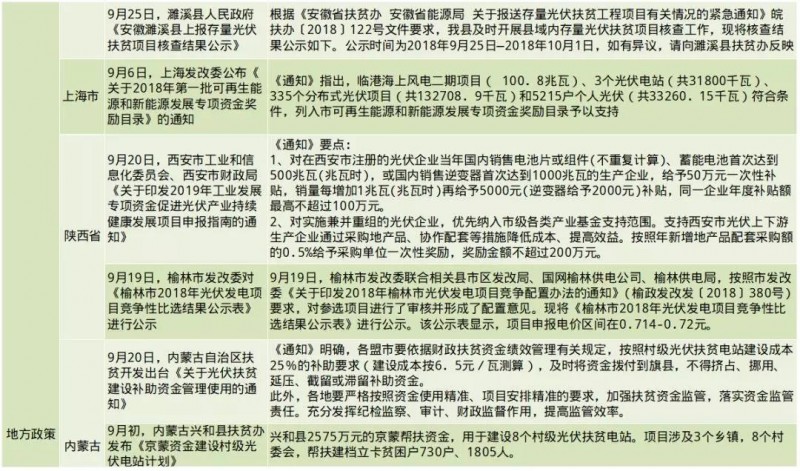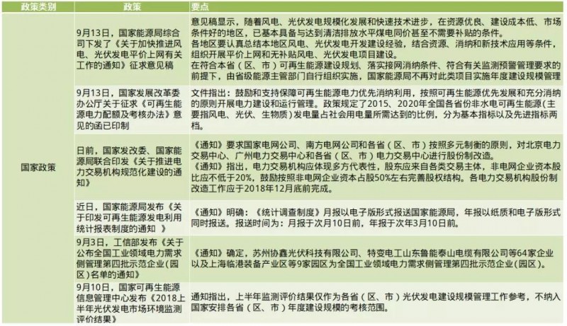 國家:出臺光伏新政策6條;政策內(nèi)容要點諸如:各地區(qū)組織開展平價上網(wǎng)和無補貼風(fēng)電、光伏發(fā)電項目建設(shè);