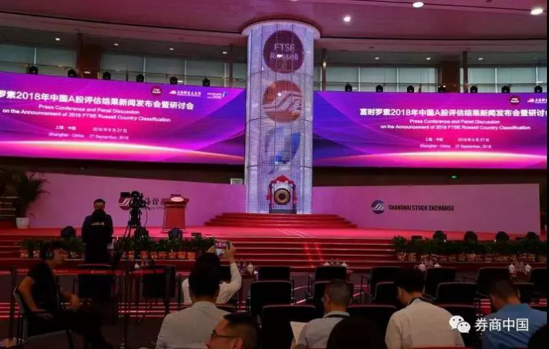 富時羅素、上交所、深交所在上交所交易大廳聯合舉行“富時羅素2018年中國A股評估結果新聞發布會暨研討會”。圖片來源:東方財富網。