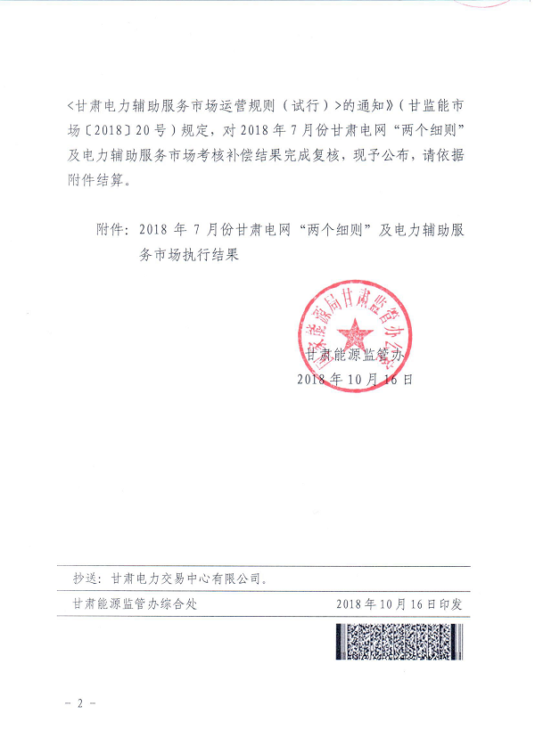7月甘肅電網“兩個細則”及電力輔助服務市場執行結果(