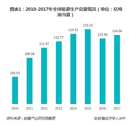 在節(jié)能減排的高度提倡,2017年全球能源生產(chǎn)總量約為114.04億噸油當(dāng)量,同比增長(zhǎng)僅為0.62%。同時(shí),新能源的生產(chǎn)表現(xiàn)越來(lái)越出色,占比從2016年的28.49%提升至2017年的32.50%。