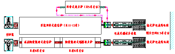 本公司開發的陶瓷輥道式輻照退火爐,長度約6米,與本公司陶瓷輥道式燒結爐進行組合,總長度只有12米,正好可以安裝在現有鏈式燒結爐的位置,解決了現有生產線沒有場地安裝新設備的難題;并且,輥道式燒結爐和輻照退火爐運行功率<30KW,比鏈式燒結爐和輻照退火爐組合節能70%以上。