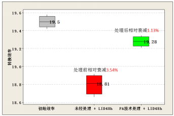 傳統工藝單晶電池輻照退火處理效果(LID由3.54%減少為1.13%)