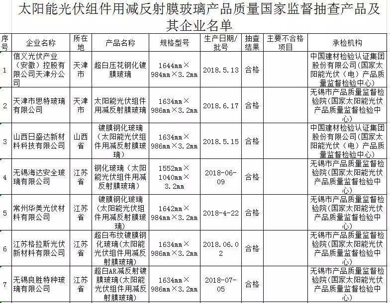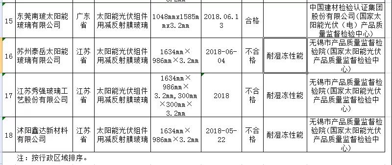 本次共抽查了天津、山西、江蘇、浙江、安徽、福建、河南、廣東等8個省、直轄市18家企業(yè)生產(chǎn)的18批次太陽能光伏組件用減反射膜玻璃產(chǎn)品。依據(jù)JC/T2170-2013(2017)《太陽能光伏組件用減反射膜玻璃》標(biāo)準(zhǔn)的要求,對太陽能光伏組件用減反射膜玻璃產(chǎn)品的碎片狀態(tài)、霰彈袋沖擊性能、光學(xué)性能、耐洗涮性能、耐中性鹽霧性能、耐濕凍性能、耐紫外性能等7個項目進行了檢驗。抽查發(fā)現(xiàn)有3批次產(chǎn)品耐濕凍性能項目不符合標(biāo)準(zhǔn)的規(guī)定。