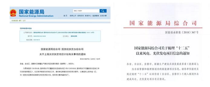 隨后,國家能源局于11月7日重發了《關于上報光伏扶貧項目計劃有關事項的通知》和《關于梳理“十二五”以來風電、光伏發電項目信息的通知》兩份文件(注:10月10日曾發過一次),以敦促各省市(區)政府抓緊上報光伏扶貧項目申請信息,對所在地區存量光伏項目進行“摸底”等,同時也為接下來出臺更多光伏政策預熱。