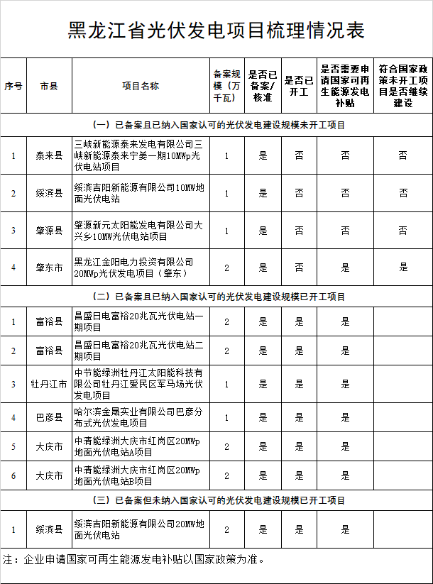關(guān)于黑龍江省光伏發(fā)電項(xiàng)目梳理情況的公示
