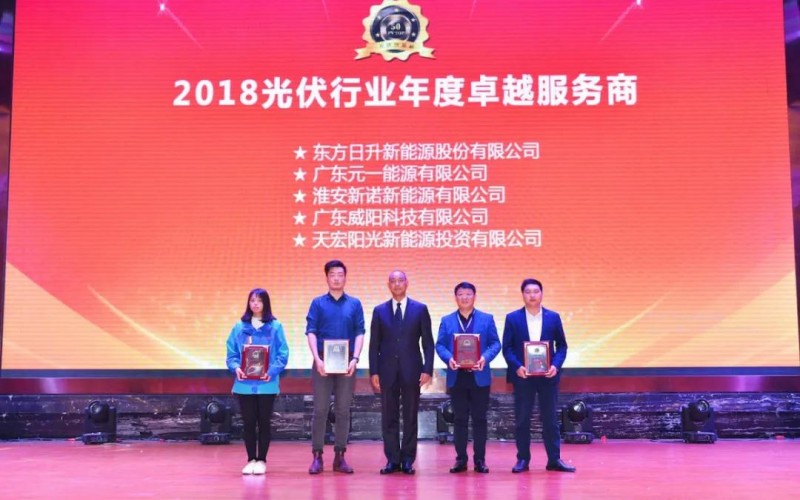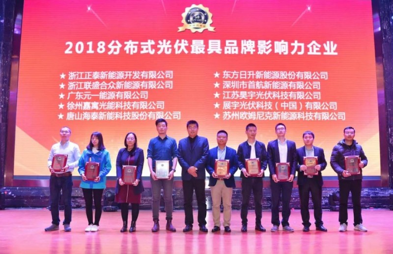 作為全國領(lǐng)先的清潔能源綜合服務(wù)商,廣東元一能源有限公司受邀出席此次會議。會議設(shè)立八大創(chuàng)新獎項,經(jīng)過為期4個月的激烈角逐,在經(jīng)過申報——初審及公示——網(wǎng)上投票——綜合評選等環(huán)節(jié)之后,元一能源榮獲“2018分布式光伏最具品牌影響力企業(yè)”、“2018光伏行業(yè)年度卓越服務(wù)商”、“2018光伏行業(yè)創(chuàng)新力企業(yè)50強”三項殊榮,公司代表孫榕良在眾多同行的見證下,領(lǐng)取了榮譽獎項。