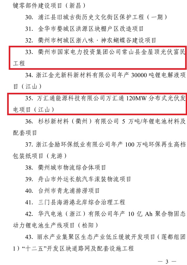 浙江調整2018年省重點建設項目名單:兩光伏項目退出