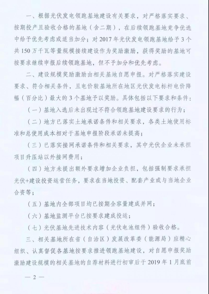 近日,國家能源局綜合司發(fā)布《關(guān)于光伏發(fā)電領(lǐng)跑基地獎勵激勵有關(guān)事項的通知》,對于嚴格落實要求、按期投產(chǎn)且驗收合格的基地(含二期)在后續(xù)領(lǐng)跑基地競爭優(yōu)選中給予優(yōu)先考慮或適當加分;對2017年光伏發(fā)電基地給予3個共150萬千瓦等量規(guī)模連續(xù)建設(shè)作為獎勵激勵。
