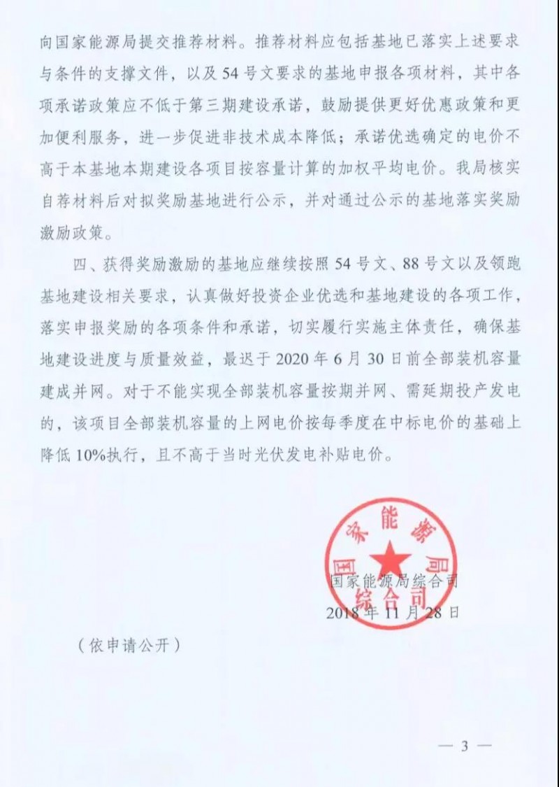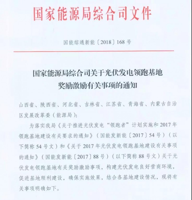 近日,國家能源局綜合司發布《關于光伏發電領跑基地獎勵激勵有關事項的通知》(文件見附件),提出: